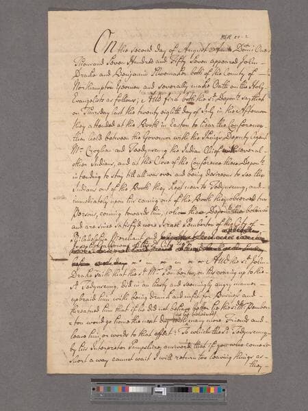 George Croghan and Conrad Weiser affidavit regarding meeting at Easton with Teedyuscung