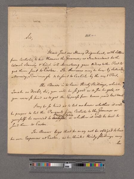 A collection of correspondence, documents, and maps related to the Walking Purchase and the Councils of Easton retained by the office of Pennsylvania's governor William Denny (in office from August 1756 to October 1759). The bulk of the collection consists of the records of the Council of Easton (August 1757) and the inquiry into the legality of the Walking Purchase authorized by Denny. It contains affidavits, sworn testimony, exhibits, memorandum, correspondence, and notes; this material includes original documents dating back to the time of the fraudulent land deal as well as some military correspondence. The collection also includes several documents and letters concerning Native American troubles on the frontier in the 1740s, along with their protests to the Proprietors over rum being sold to their people. Important persons in the collection include, among others, William Allen, Benjamin Chew, George Croghan, William Denny, Benjamin Franklin, James Hamilton, William Markham, Israel Pemberton, Thomas Penn, Richard Peters, Nicholas Scull, Teedyuscung (Delaware Chief), George Thomas, and Conrad Weiser. Almost all of the material in the collection is docketed and bears the initials or signatures of W. H. Rolph, followed by hyphenated numbers. The collection also contains oversize material and a small group of 20th century newspaper clippings about the Walking Purchase and the material in this collection.