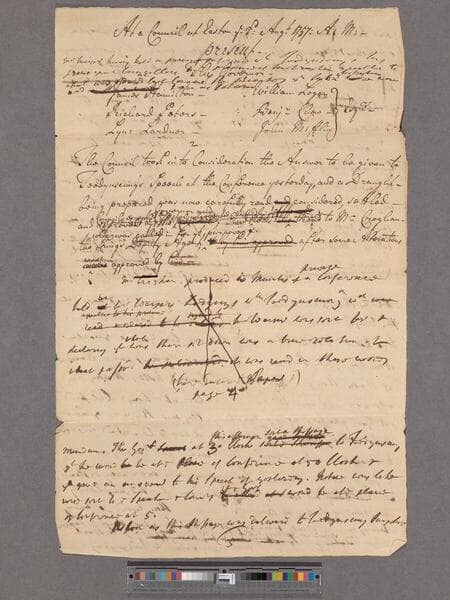 A collection of correspondence, documents, and maps related to the Walking Purchase and the Councils of Easton retained by the office of Pennsylvania's governor William Denny (in office from August 1756 to October 1759). The bulk of the collection consists of the records of the Council of Easton (August 1757) and the inquiry into the legality of the Walking Purchase authorized by Denny. It contains affidavits, sworn testimony, exhibits, memorandum, correspondence, and notes; this material includes original documents dating back to the time of the fraudulent land deal as well as some military correspondence. The collection also includes several documents and letters concerning Native American troubles on the frontier in the 1740s, along with their protests to the Proprietors over rum being sold to their people. Important persons in the collection include, among others, William Allen, Benjamin Chew, George Croghan, William Denny, Benjamin Franklin, James Hamilton, William Markham, Israel Pemberton, Thomas Penn, Richard Peters, Nicholas Scull, Teedyuscung (Delaware Chief), George Thomas, and Conrad Weiser. Almost all of the material in the collection is docketed and bears the initials or signatures of W. H. Rolph, followed by hyphenated numbers. The collection also contains oversize material and a small group of 20th century newspaper clippings about the Walking Purchase and the material in this collection.