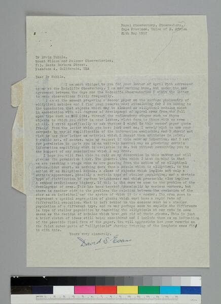 EPH writes to astronomy graduate student Nicholas Mayall regarding specific nebulae
