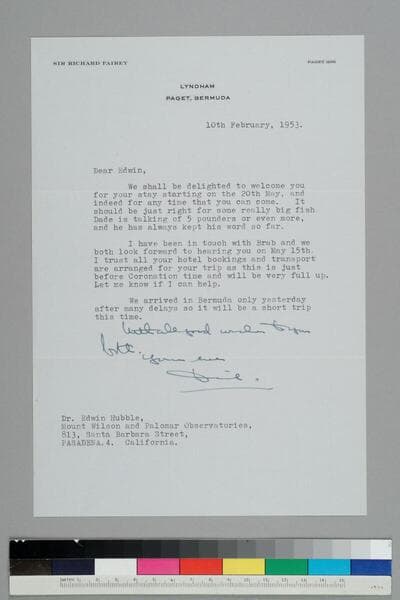 Pioneer aviator Richard Fairey writes Edwin Hubble