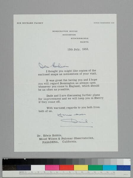 Pioneer aviator Richard Fairey writes Edwin Hubble