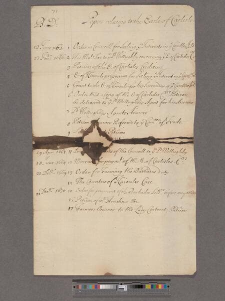 Great Britain. Privy Council Committee for Trade & Plantations. List of Papers relating to the Earl of Carlisle