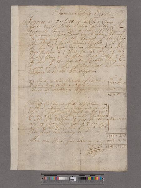 D'Oyley, Edward & others. Invoice ... of the Cost & Charges of cargo on board the "Edward" of Jamaica ... Jamaica