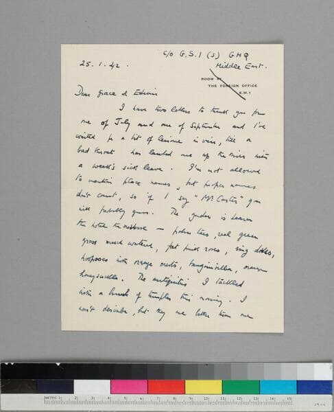 Robert Gore-Browne writes to Grace and Edwin Hubble with news of the war