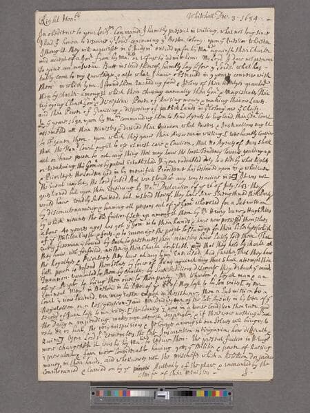 Randolph, Edward. Letter to Francis North, 1st Baron Guilford, Lord Keeper