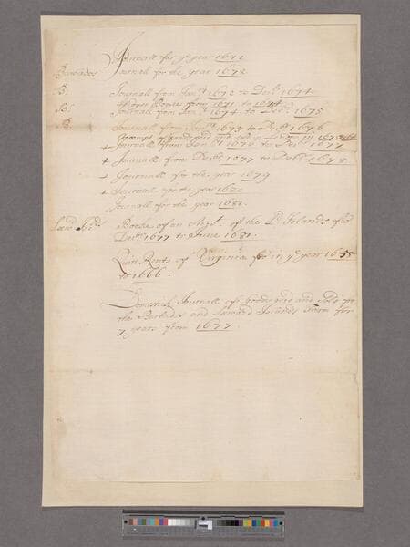 ![Bradgate, Thomas. [An account of the receipt of the duty of the 4 1/2 P cent in the Leeward Islands, for the year 1672.]](/_next/image?url=https%3A%2F%2Frail.huntington.org%2FIIIF3%2FImage%2F22APN4M6LLEE%2Ffull%2F%5E360%2C%2F0%2Fdefault.jpg&w=750&q=75)