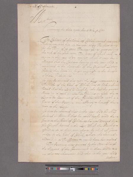 ![Leeward Islands. General Assembly. Answer to His Majesty [Charles II] on his proffer to commute or exchange the duty of 4 1/2 per cent](/_next/image?url=https%3A%2F%2Frail.huntington.org%2FIIIF3%2FImage%2F22APN4M6G57F%2Ffull%2F%5E360%2C%2F0%2Fdefault.jpg&w=750&q=75)
