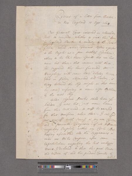 [-----]. Extract of Letter from Boston. Boston, [Massachusetts]