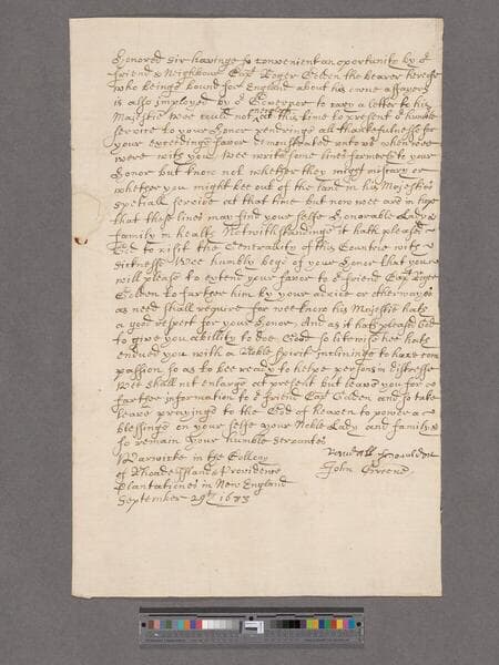Howldon, Randall & Greene, John. To Sir Robert Southwell. Warwick, Rhode Island