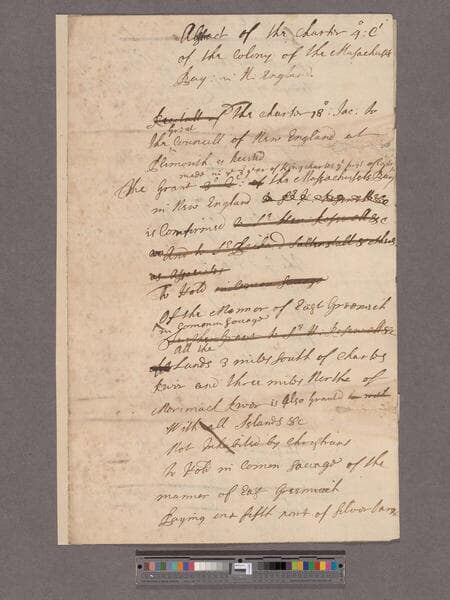 Povey, John. Abstract of the Charter 4:Car. 1 of the Colony of the Massachusetts Bay in New England