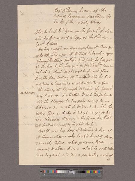 Povey, John. Abstracts of Capt. [Charles] Thomas's & [Edward] Cranfield's letters, from Barbados