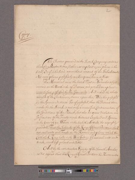 Great Britain. Board of Trade. To James Vernon : [Report upon the Scotch Settlement at Darien]