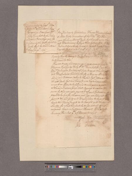 Great Britain. Treasury. Warrant for delivering the Goods found in Yorke fort to the Hudson's Bay Comp