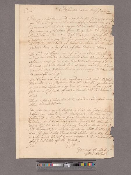 Heathcote, Sir Gilbert. Letter to William Blathwayt