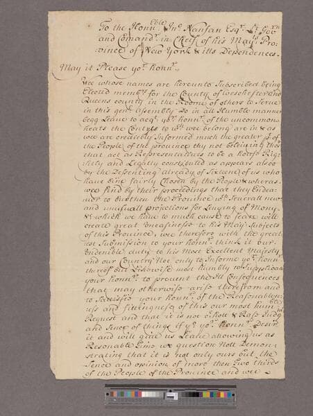Heathcote, Caleb & others. To John Nanfan : [Statement of the Elected members for Queens and Westchester Counties to serve in the General Assembly of New York]
