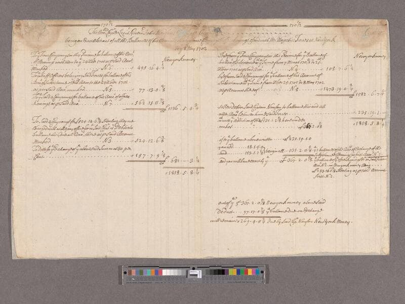 Nanfan, John. A list of the accounts relating to ... John Nanfan and the forces during his administration [in New York], from Mar. 8 1700/01 to May 8, 1702. [together with the eleven pieces listed.]