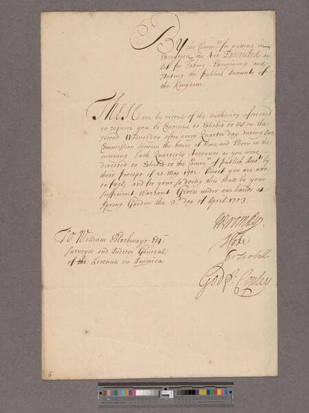 Great Britain. Commissioners of Public Accounts. Precept to William Blathwayt