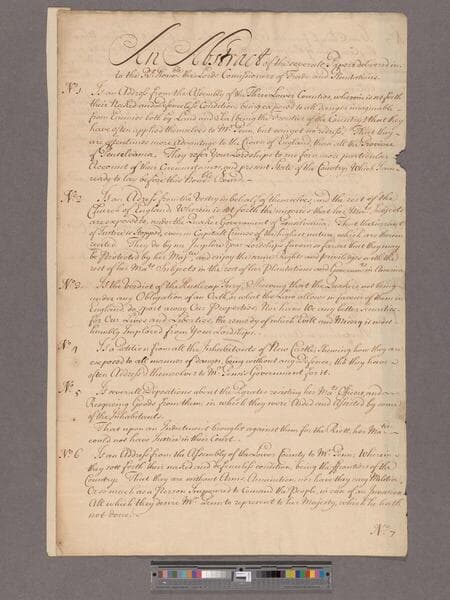 ![Quary, Robert. To the Lords of Trade : [A list of papers showing the "dangers that the proprietary Colonies in America are exposed to."]](/_next/image?url=https%3A%2F%2Frail.huntington.org%2FIIIF3%2FImage%2F22APN4NQY1GK%2Ffull%2F%5E360%2C%2F0%2Fdefault.jpg&w=750&q=75)