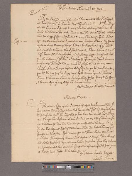 Preceded by a copy of a letter written Nov. 13, 1702.