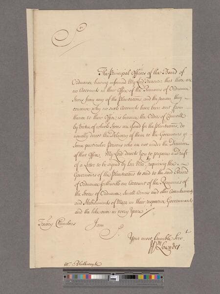 Lowndes, William. Letter to William Blathwayt