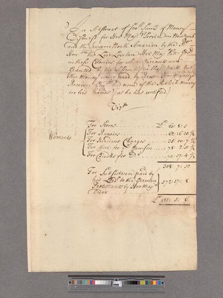 Byerley, Thomas. Abstract of Money Disbursed by Lord Lovelace for Her Majesty's Service in New York and the Jersies