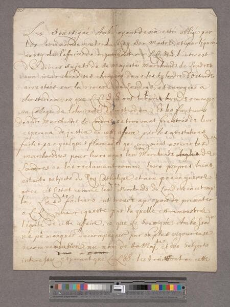 Temple, Sir William. Memorial (draft) for appeal in case of the Bilanders. Hague