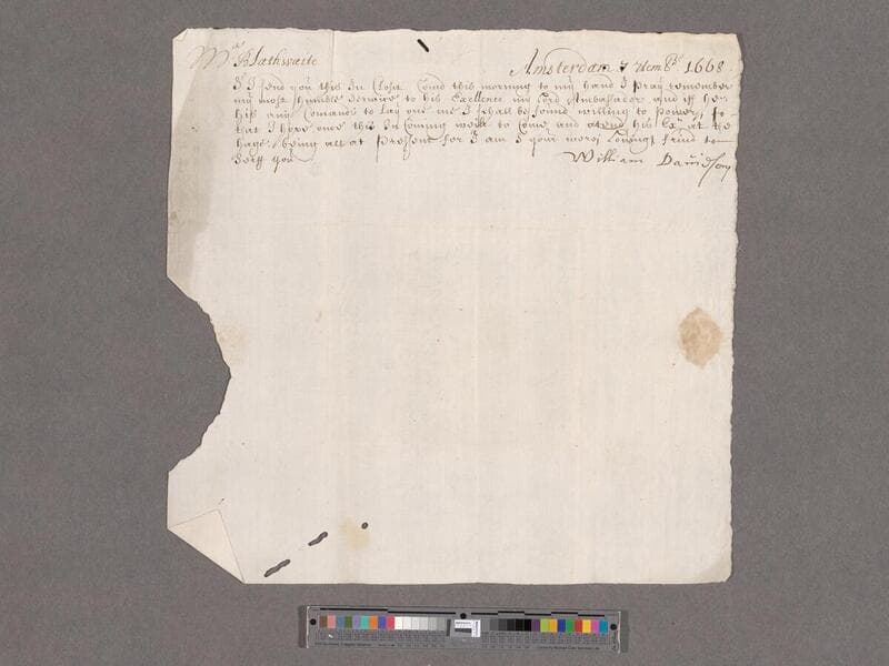 Davidson, Sir William. To William Blathwayt. Amsterdam