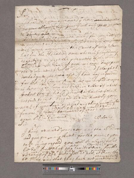 Letter 1: Robert Wolseley to an unknown recipient. The authors and recipients of letters 2-4 are unidentified; letters 3 and 4 are in French and letter 4 relates to the purchase of books.
