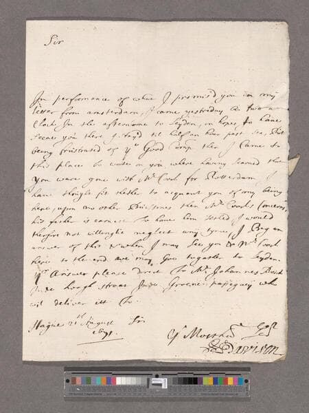 Correspondence and documents (accounts and bills) accumulated by Blathwayt during his service in the Hague, and subsequent tour of Europe (1672), along with some later diplomatic correspondence (1682) and a few items relating to British colonies in East and West Indies.