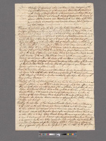 Articles of Agreement . . . Relative to a marriage now intended between John Decluzeau and Esther Black