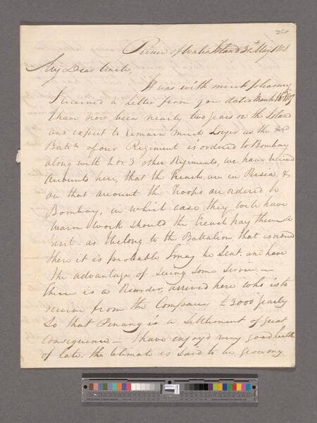 This manuscript is a letter addressed "My Dear Uncle" and signed only as "Irving." The author describes his stay in Minnesota while on his journey to California. Also includes a small bit of paper with the following written in pencil: Dec 7th, 1859, Going West.