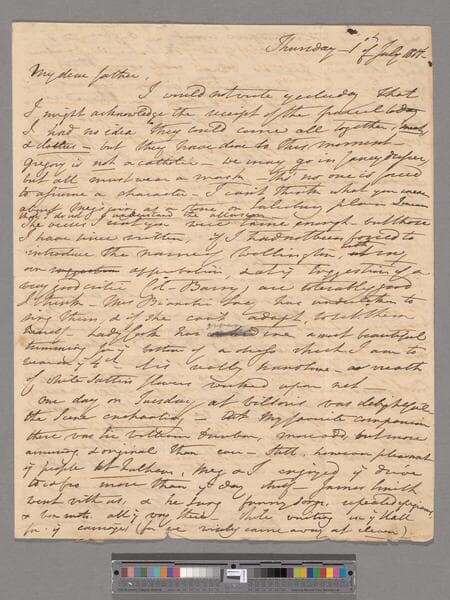 The collection consists of correspondence, most of which are from Amelia Alderson Opie, to her cousin, Eliza Alderson Briggs (173 letters) and husband Henry Perronet Briggs (100 letters). Many of the remaining letters in the collection are to other Alderson family members. Subjects discussed include the life and affairs of Amelia Alderson Opie and her family and friends, local trips to the country, their social lives and activities, current plays and books, several brief trips to Paris and the Rhineland, local elections, the Quaker philanthropist and writer Joseph John Gurney, and the paintings of Henry Briggs Other individuals represented in the collection include Pierre-Jean David d'Angers (26 pieces) and William Godwin (1 letter to Amelia Alderson Opie)