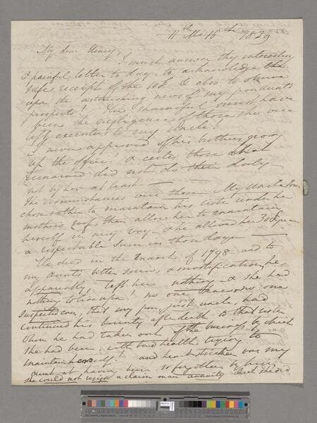 Opie, Amelia (Alderson). Letter to Henry Perronet Briggs