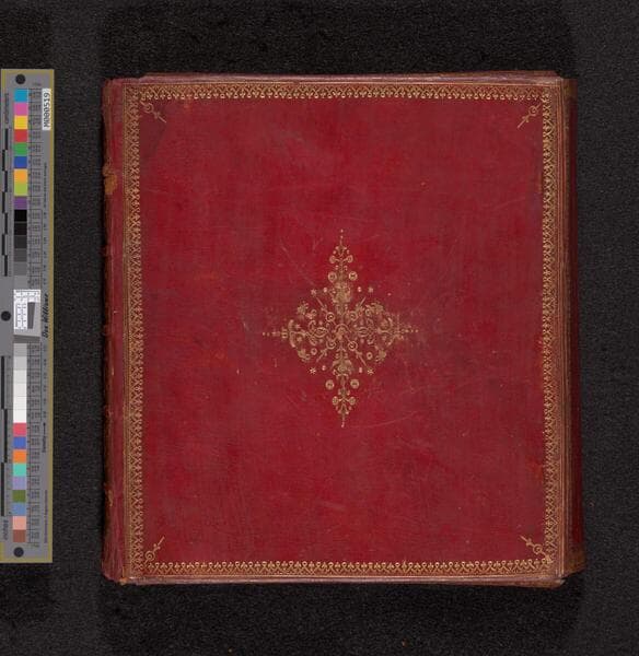 A botanical album created by Mary Parker, Countess of Macclesfield; she started the album in 1756 when she was 30 years of age. Flower painting had become a fashionable occupation for the wives and daughters of the great houses of England and Mary Parker achieved exceptional ability under the tutelage of Georg Ehret. The album contains 48 watercolor and gouache paintings on parchment; depicted are both sides of the plant's leaves and also shown are more than one reproductive stage for each specimen: with the early formation of the blossom, the growing petals, and the full expression of the flower. The images in the album depict numerous plant specimens, sometimes with butterflies and other insects, most likely local to the Macclesfield estate, Shirburn Castle, in Oxfordshire. Many of the illustrations are identified by names predating Carl Linnaeus' binomial plant nomenclature in his "Species Plantarum" (1753), while other notations on the illustrations include Linnaeus' names. The album is bound in a contemporary, richly gilt morocco wallet binding, with interior green silk ties; the binding is likely by Richard Montagu. The pages in the album are marked with the Macclesfield armorial blind stamp. It has a lock and key fastening, and while the original key is present, the lock has been deactivated by a professional restorer, please do not attempt to use the key; also present is a red velvet bookmark.