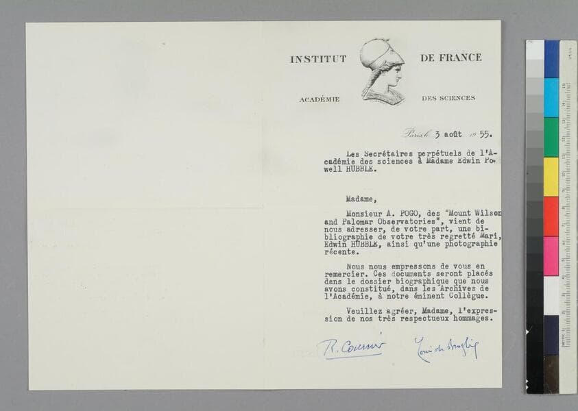 Louise de Broglie and Robert Courrier of the Institute de France write to GBH