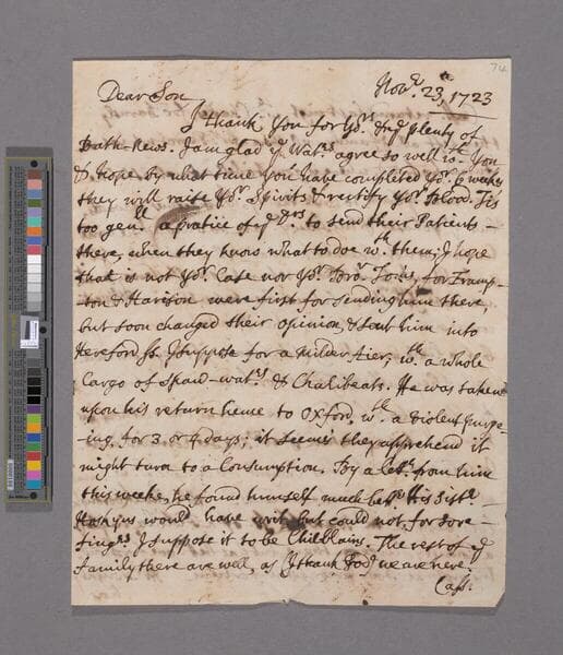 Theophilus Leigh, 1643-1725, letter to Theophilus Leigh