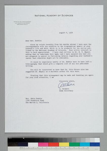 Alexander Wetmore, Home Secretary of the National Academy of Sciences, writes to EPH