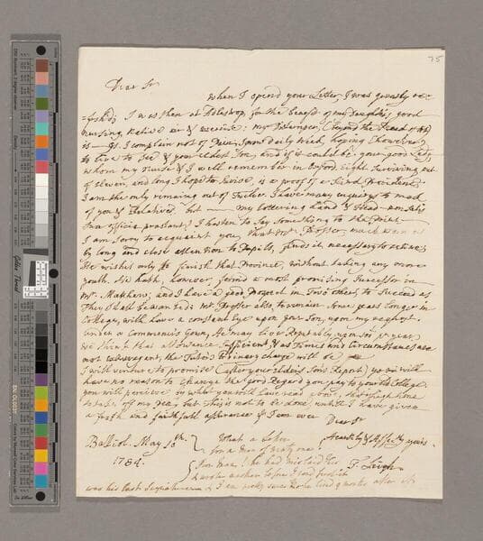 Theophilus Leigh letter, Balliol College, to Rev. Robert Master