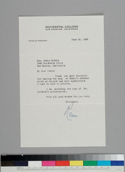 Also: copies of 3 letters from Huntington to Bird, 1925-1927. Subjects: Huntington's donations to Occidental College.