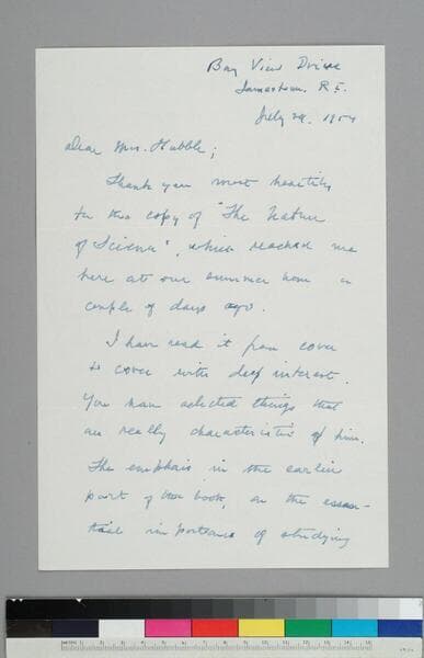 Astronomer Henry Norris Russell, writes to GBH, thanking her for the copy of The Nature of Science