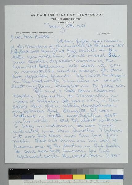 John Schommer, a friend of EPH's from the University of Chicago basketball team, writes to GBH