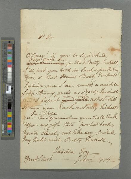 Title from first line of poem. Signed: Tabitha Jay -- Grub Street.