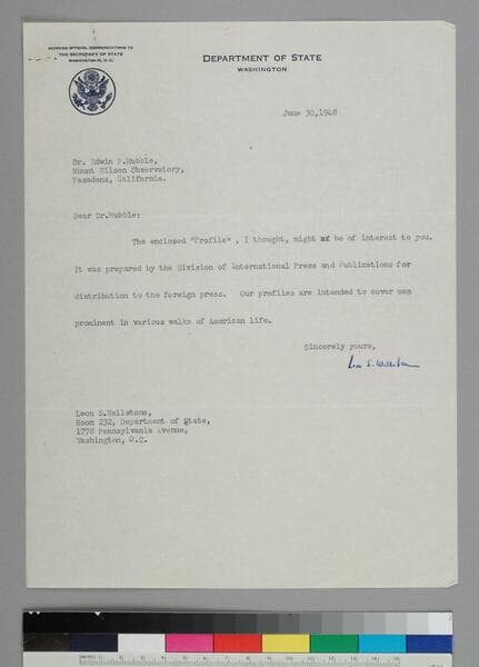 Leon Wellstone, of the U. S. Department of State, writes to EPH