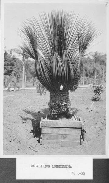 Collection of dasylirions in the desert garden, 1942