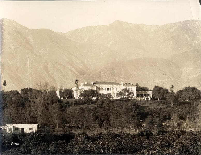 South terrace and façade of the Huntington residence, circa 1920
