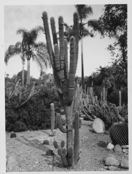 A newly planted cactus in the desert garden. The label that accompanies this photo in the album reads "Cephalocereus polyophus new planting in 1925, N. B-88."