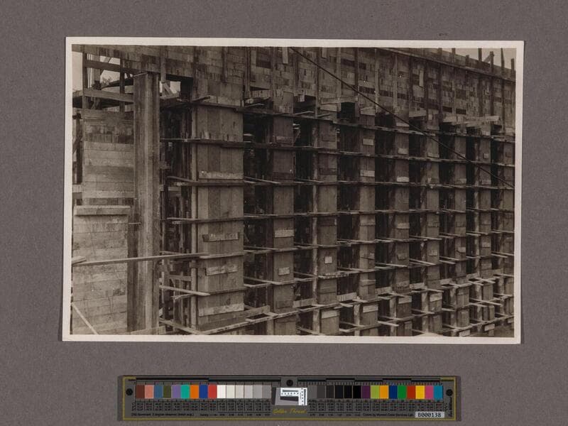 Huntington Library Construction: view showing east side of the Center Wing, looking north west; taken from the second floor of the East Wing
