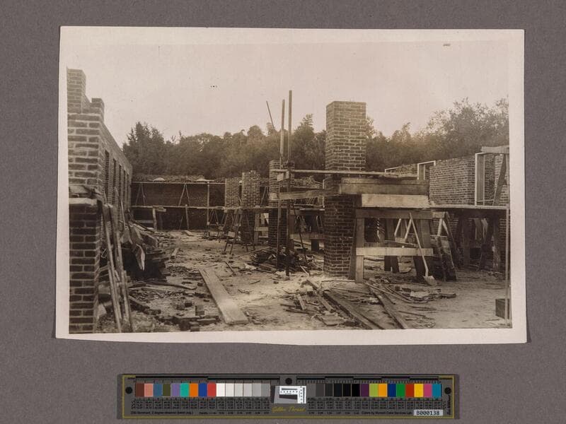Huntington Library Construction: view showing the center of the West Wing, looking north