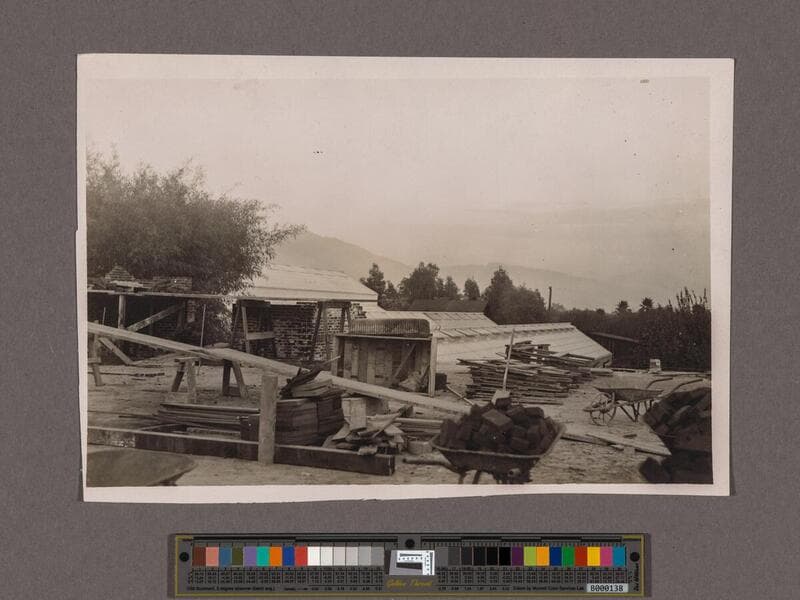 Huntington Library Construction: view showing north east corner of the Main Building, looking east